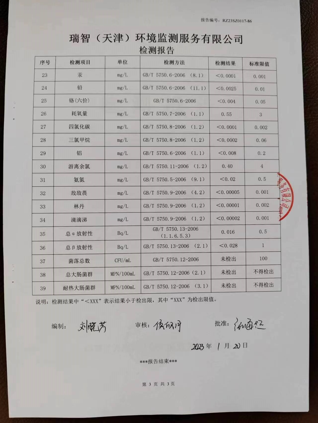 2023年1月份水質(zhì)檢測(cè)報(bào)告