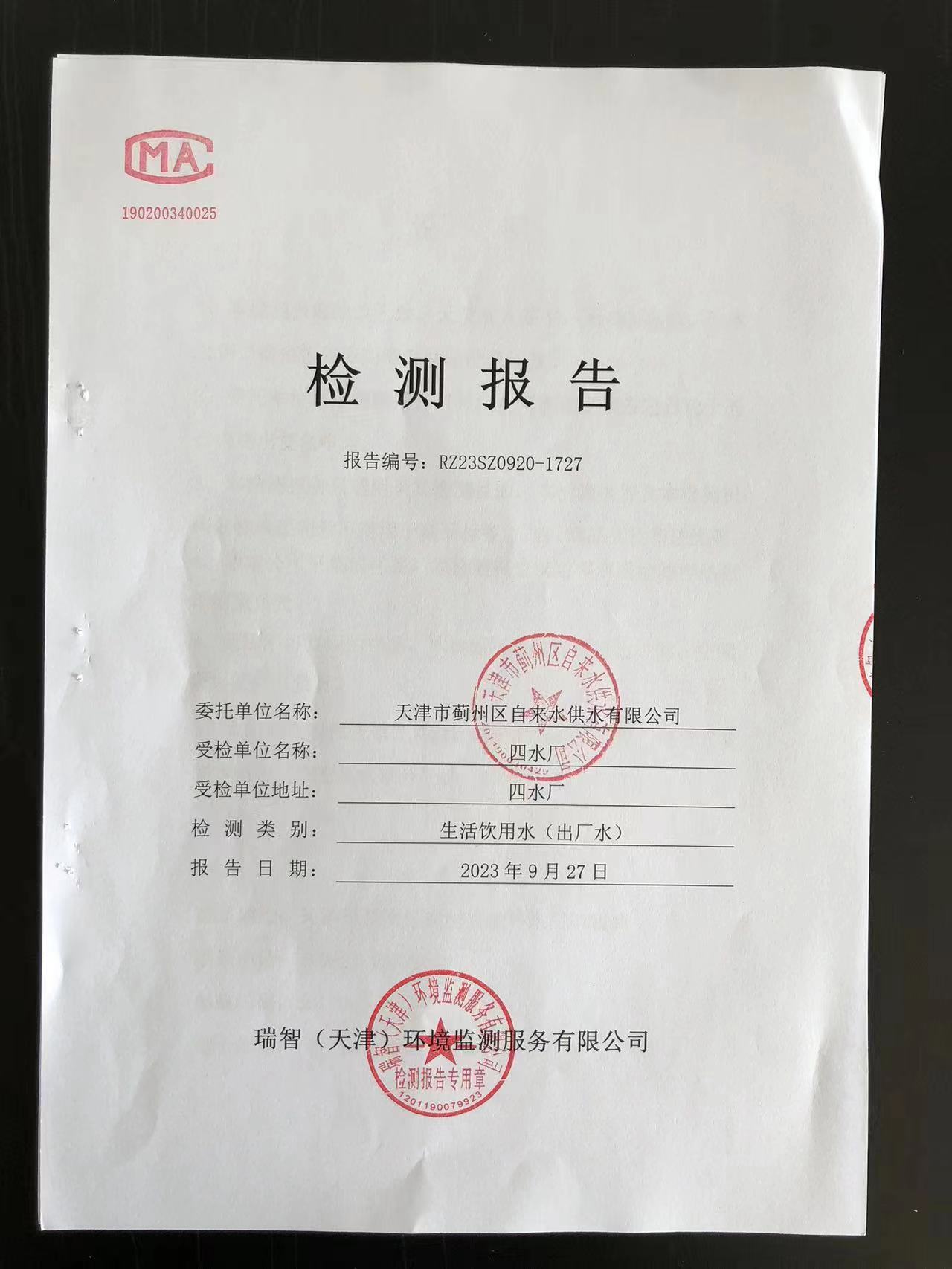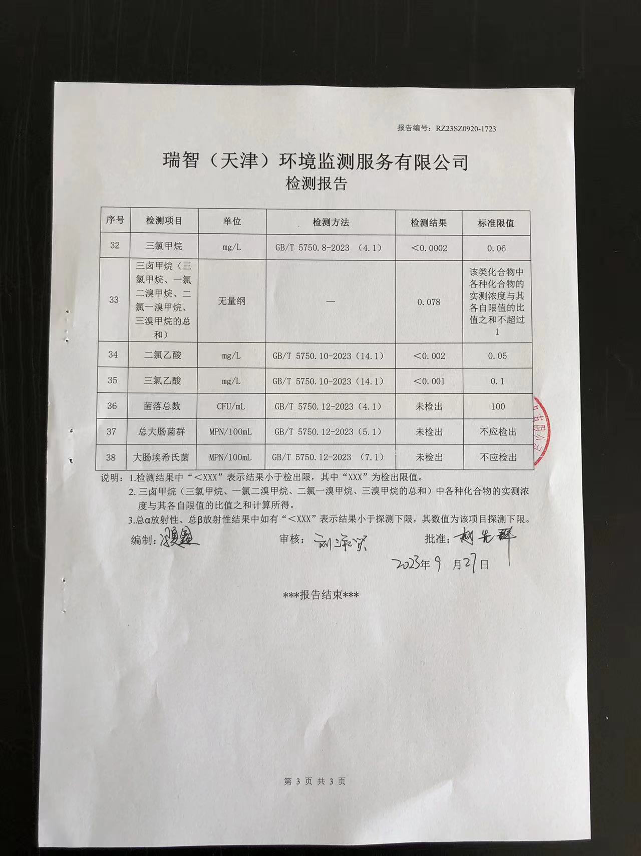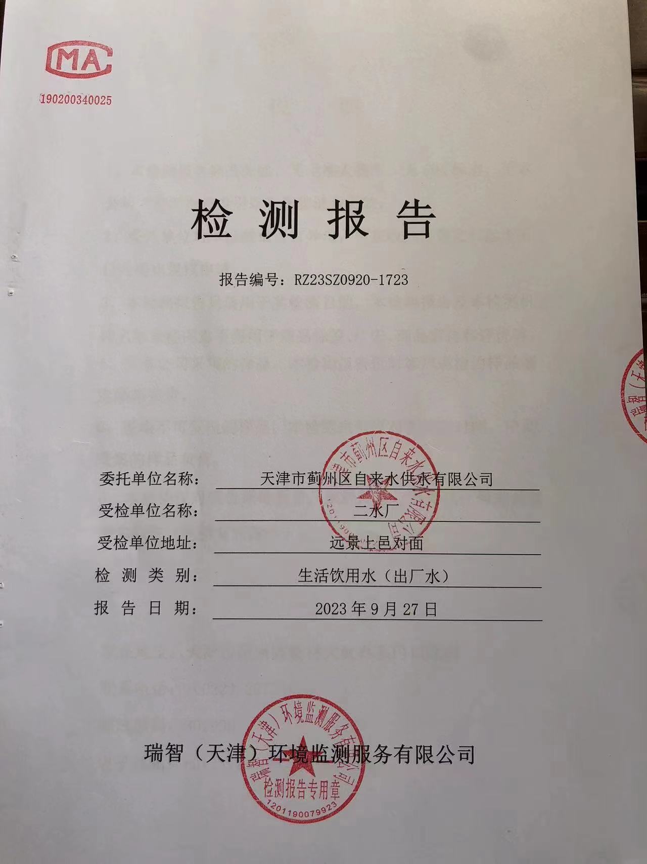 2023年9月份水質(zhì)檢測(cè)報(bào)告