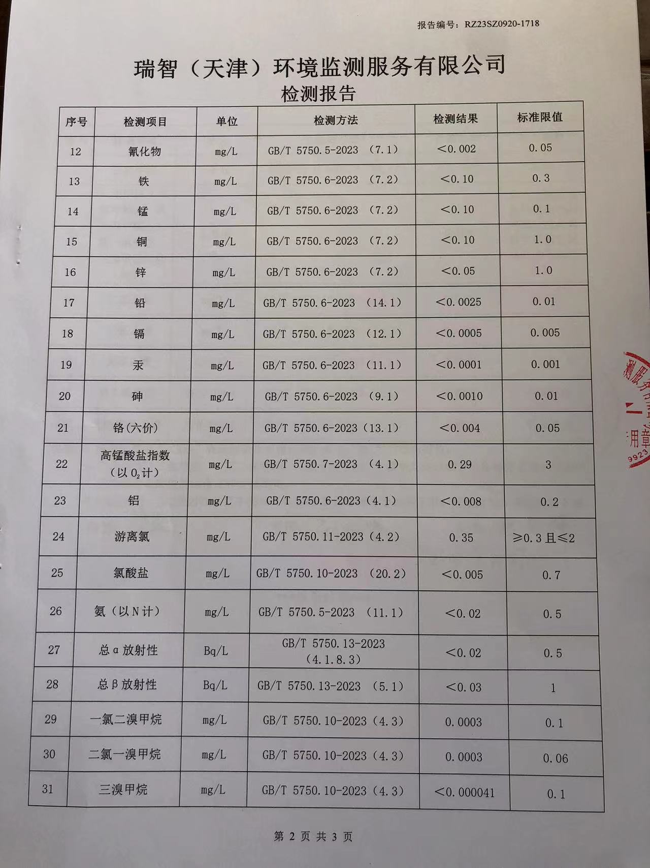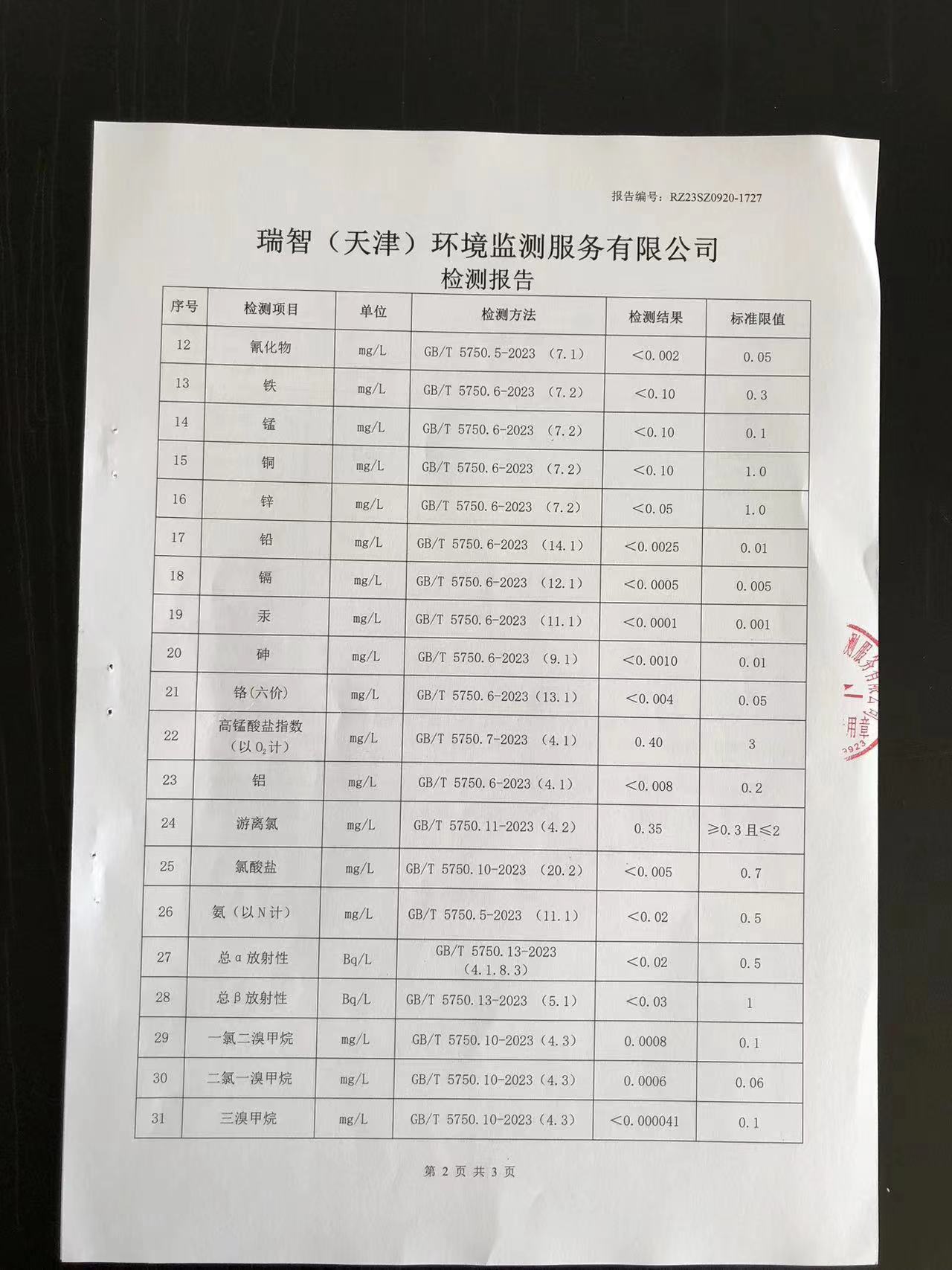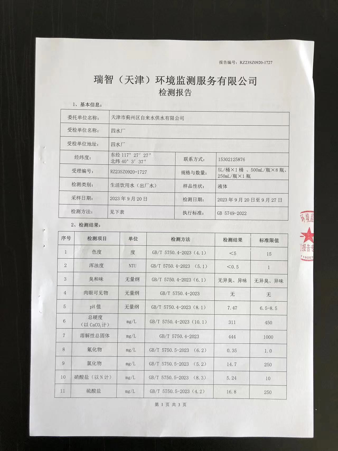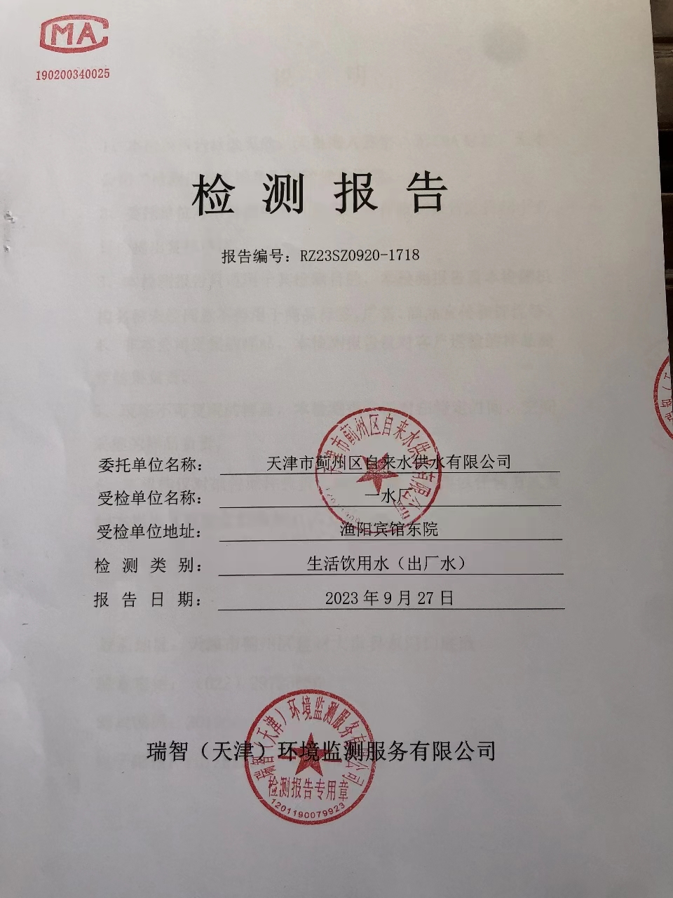 2023年9月份水質(zhì)檢測(cè)報(bào)告