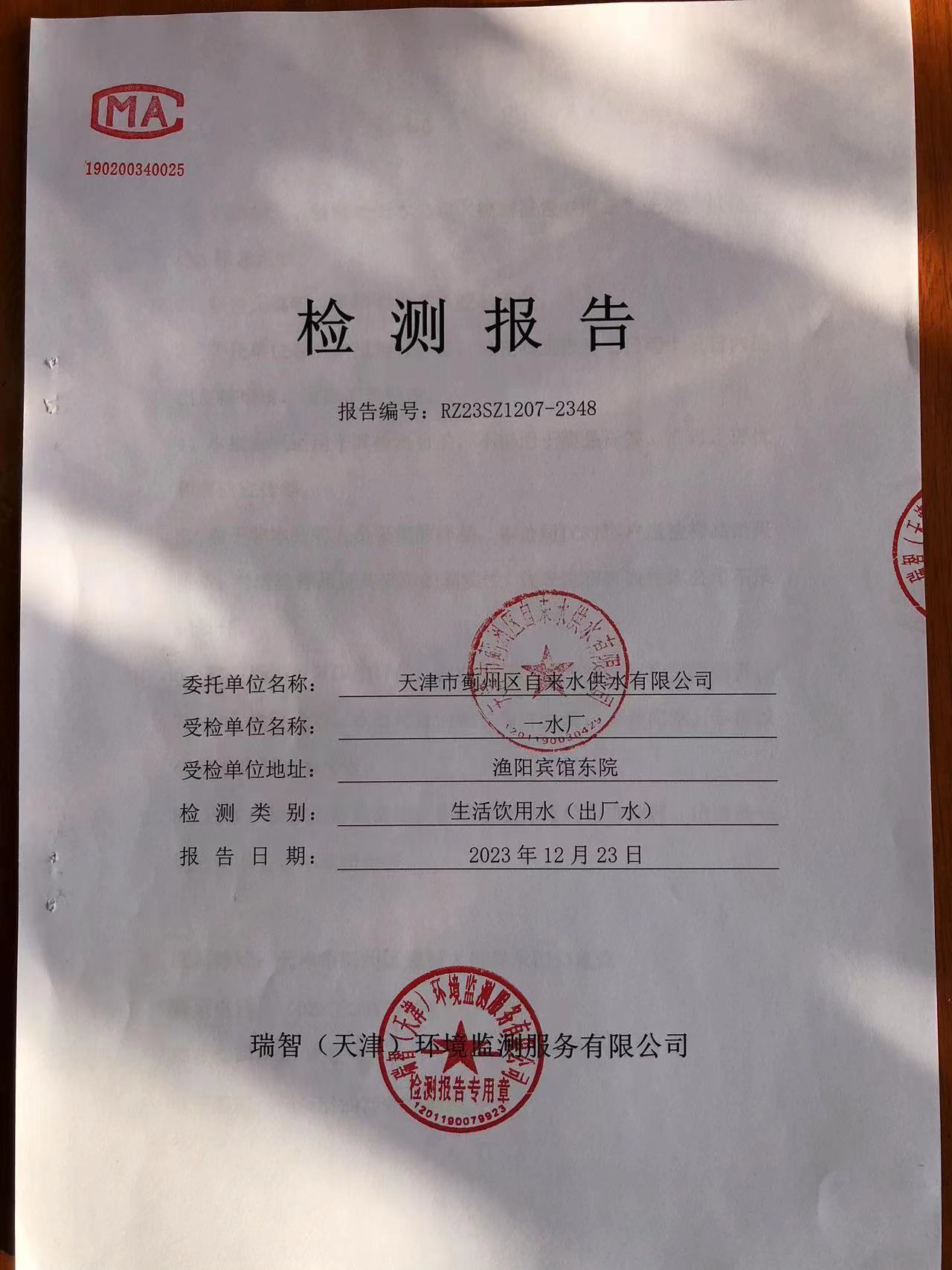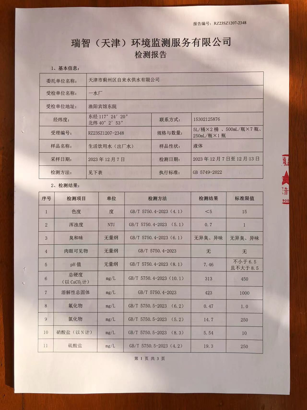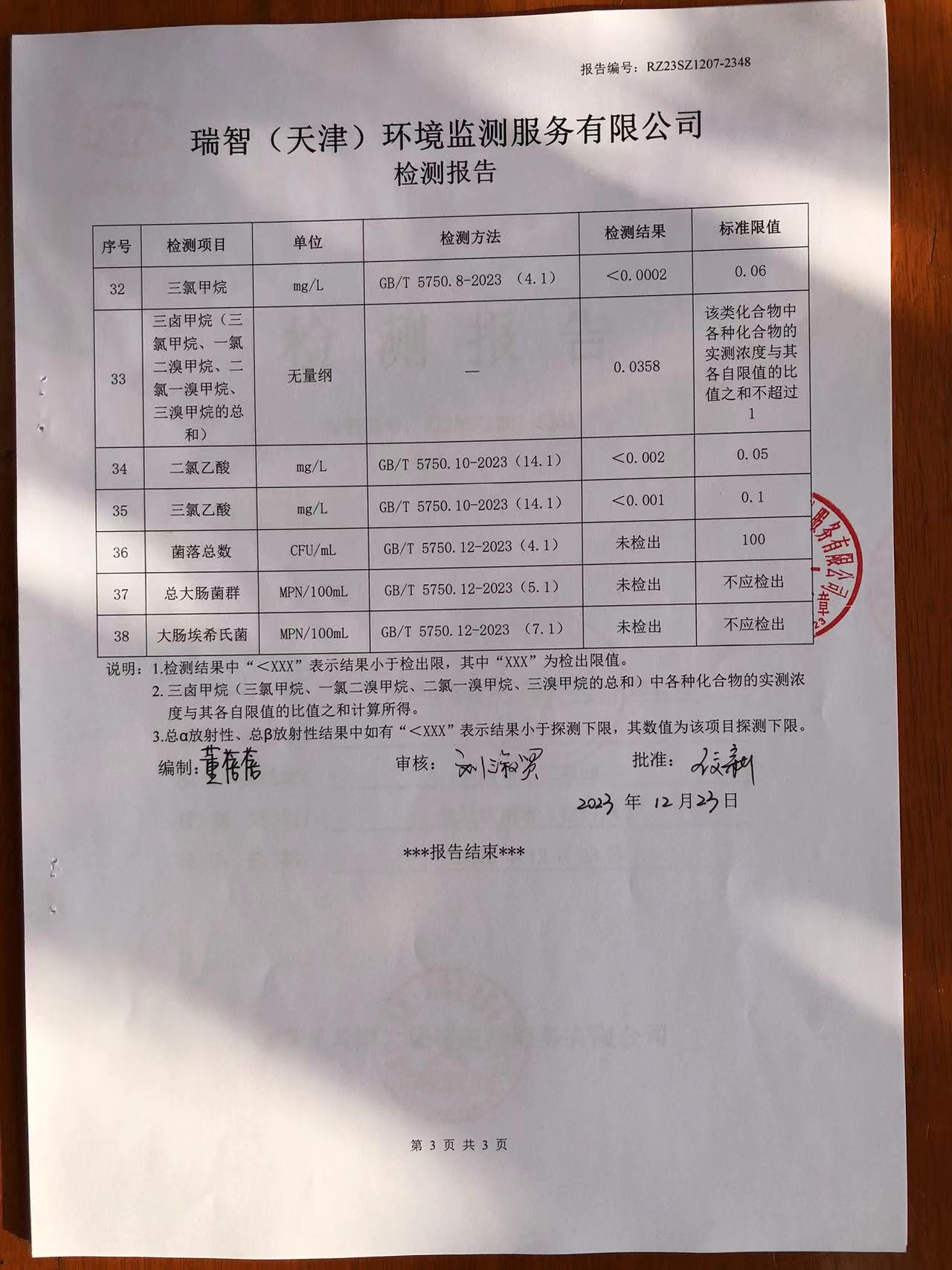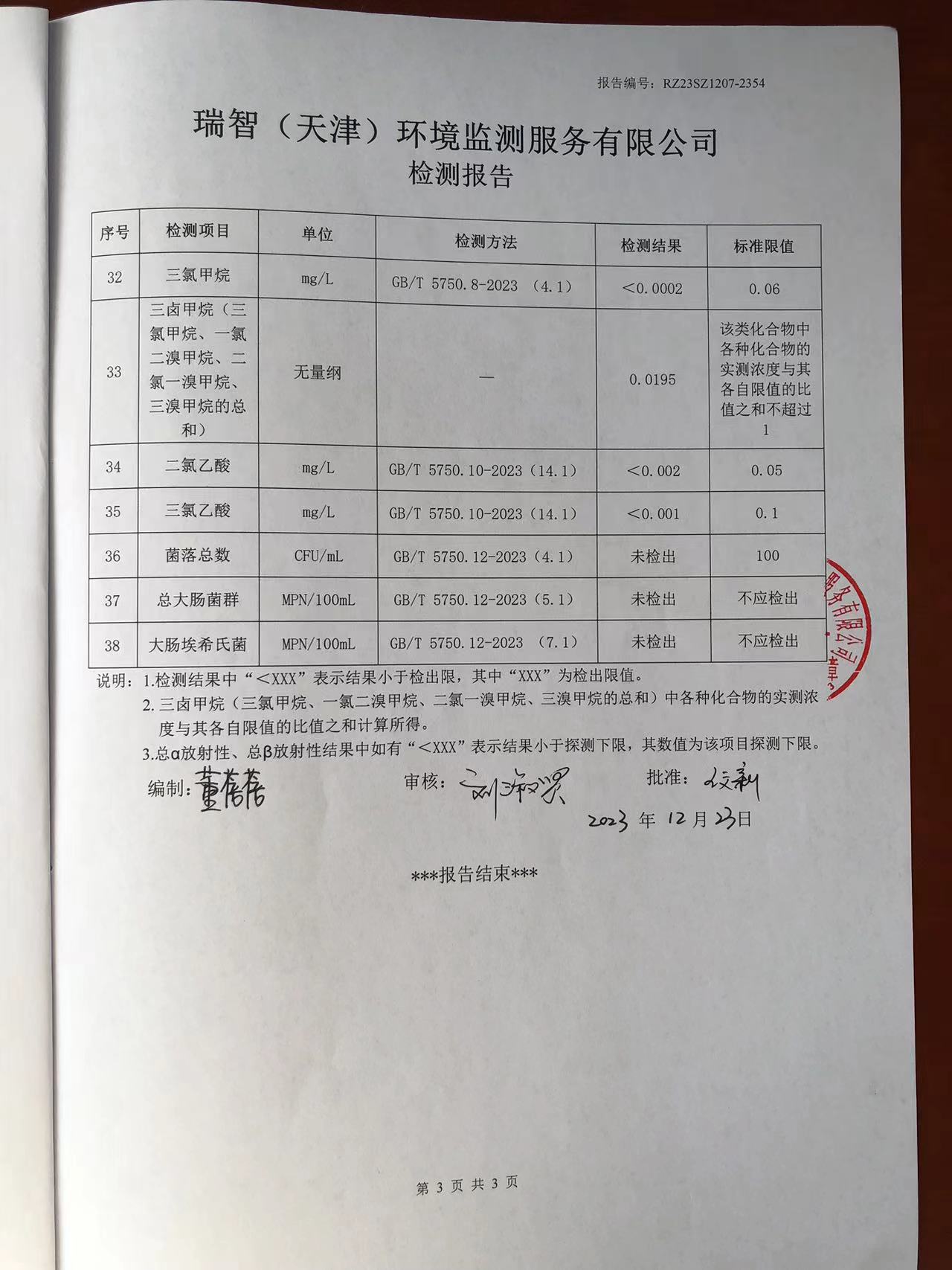 2023年12月份水質(zhì)檢測(cè)報(bào)告