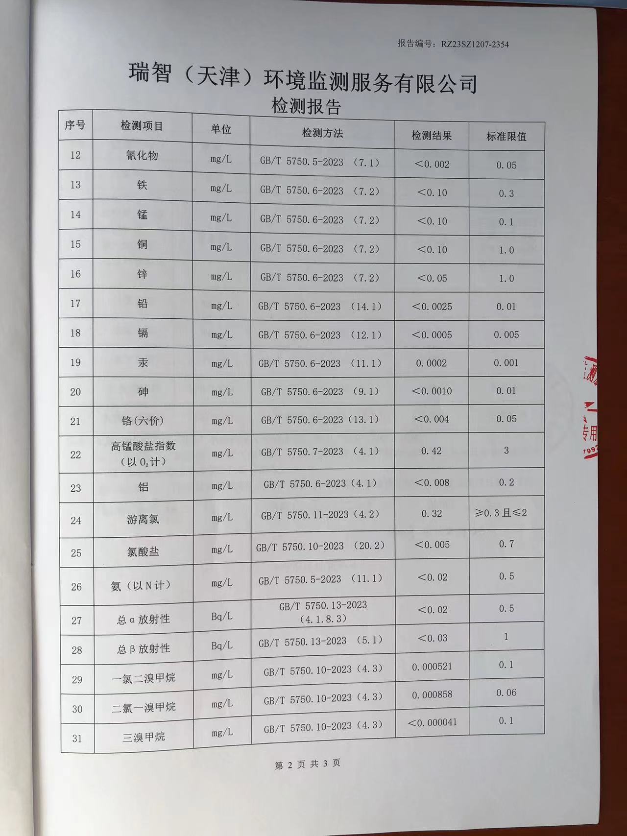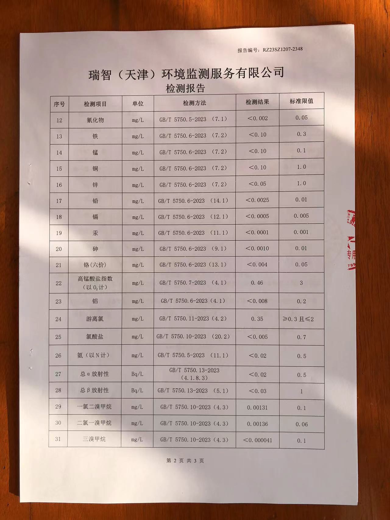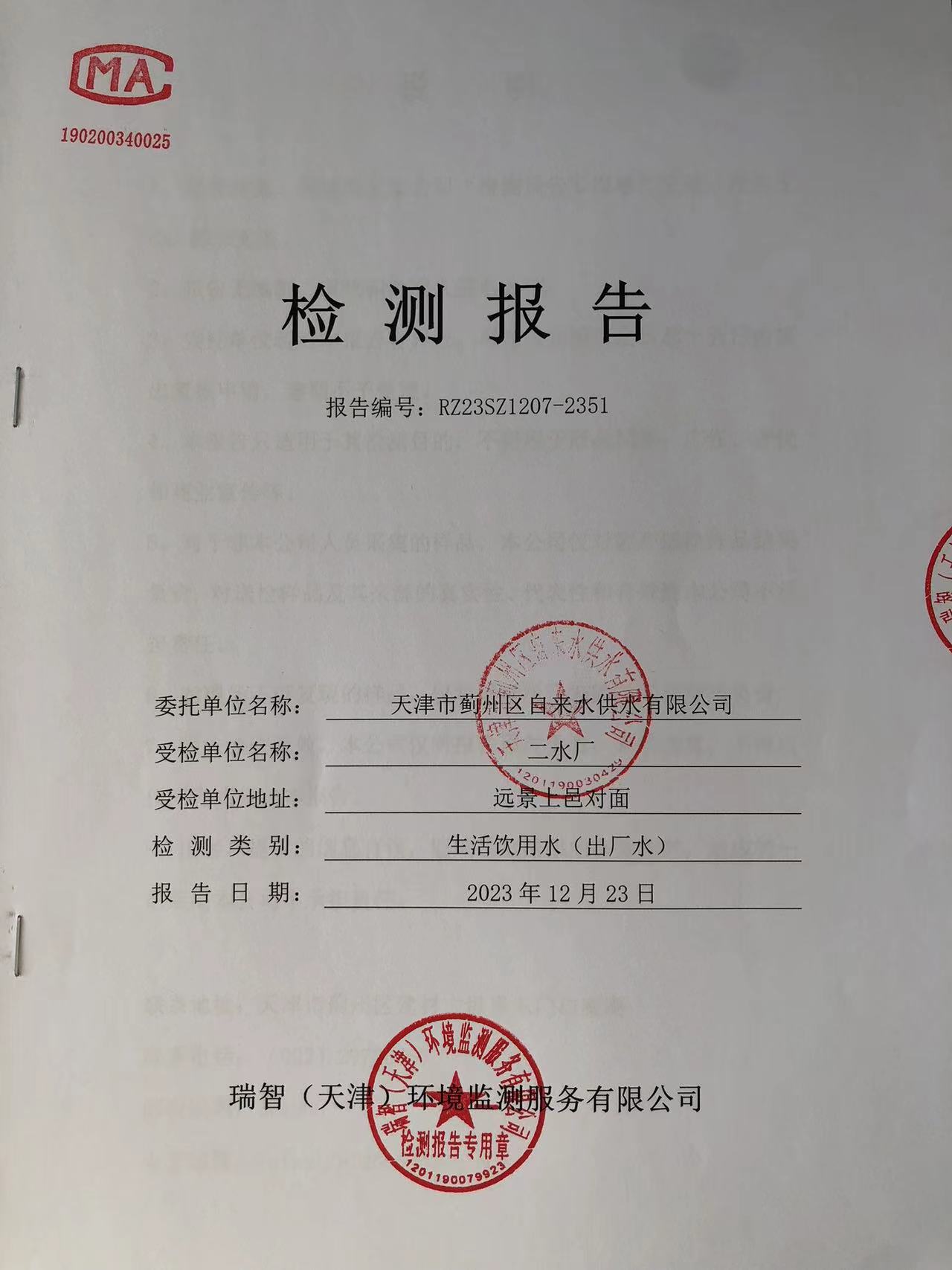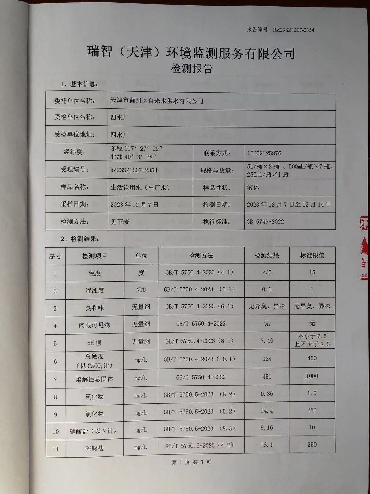 2023年12月份水質(zhì)檢測(cè)報(bào)告