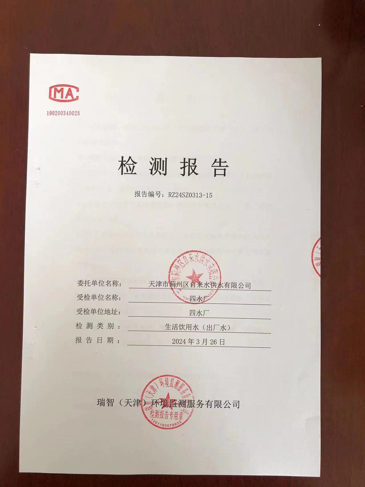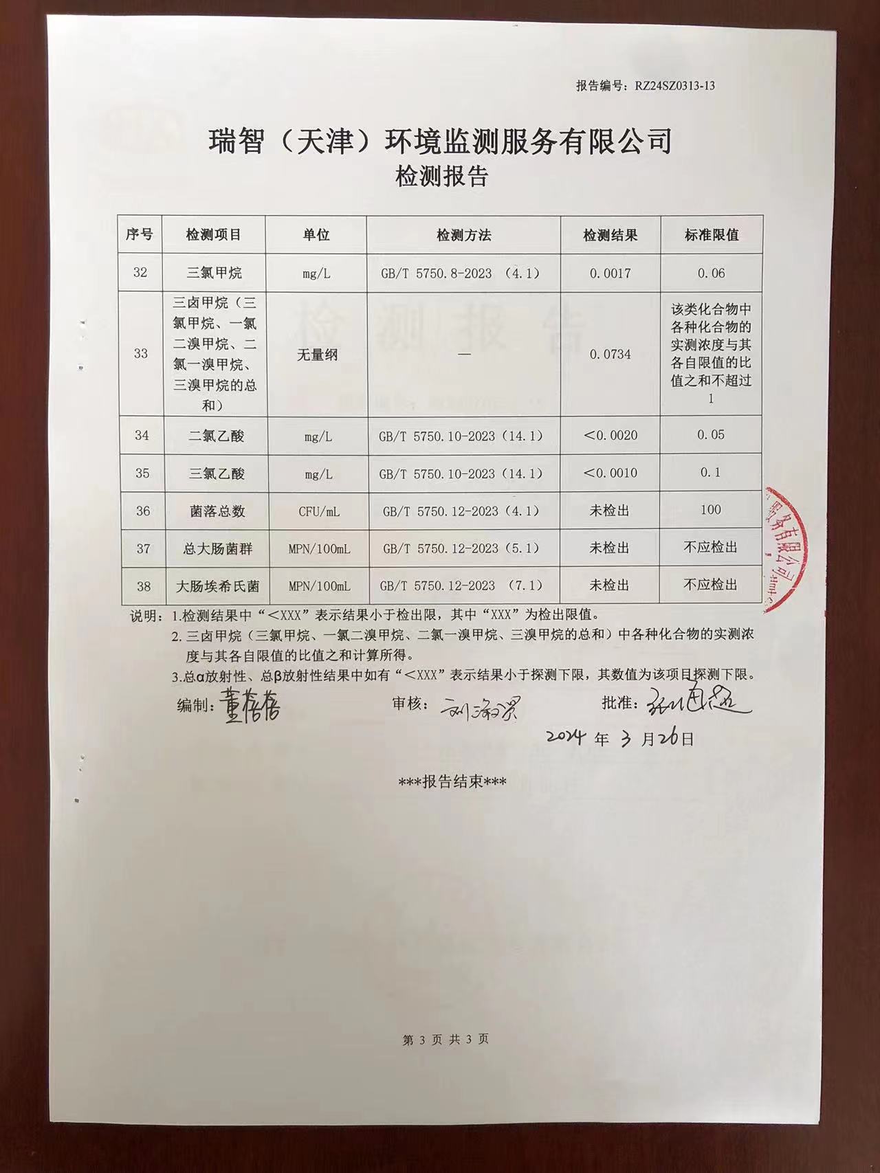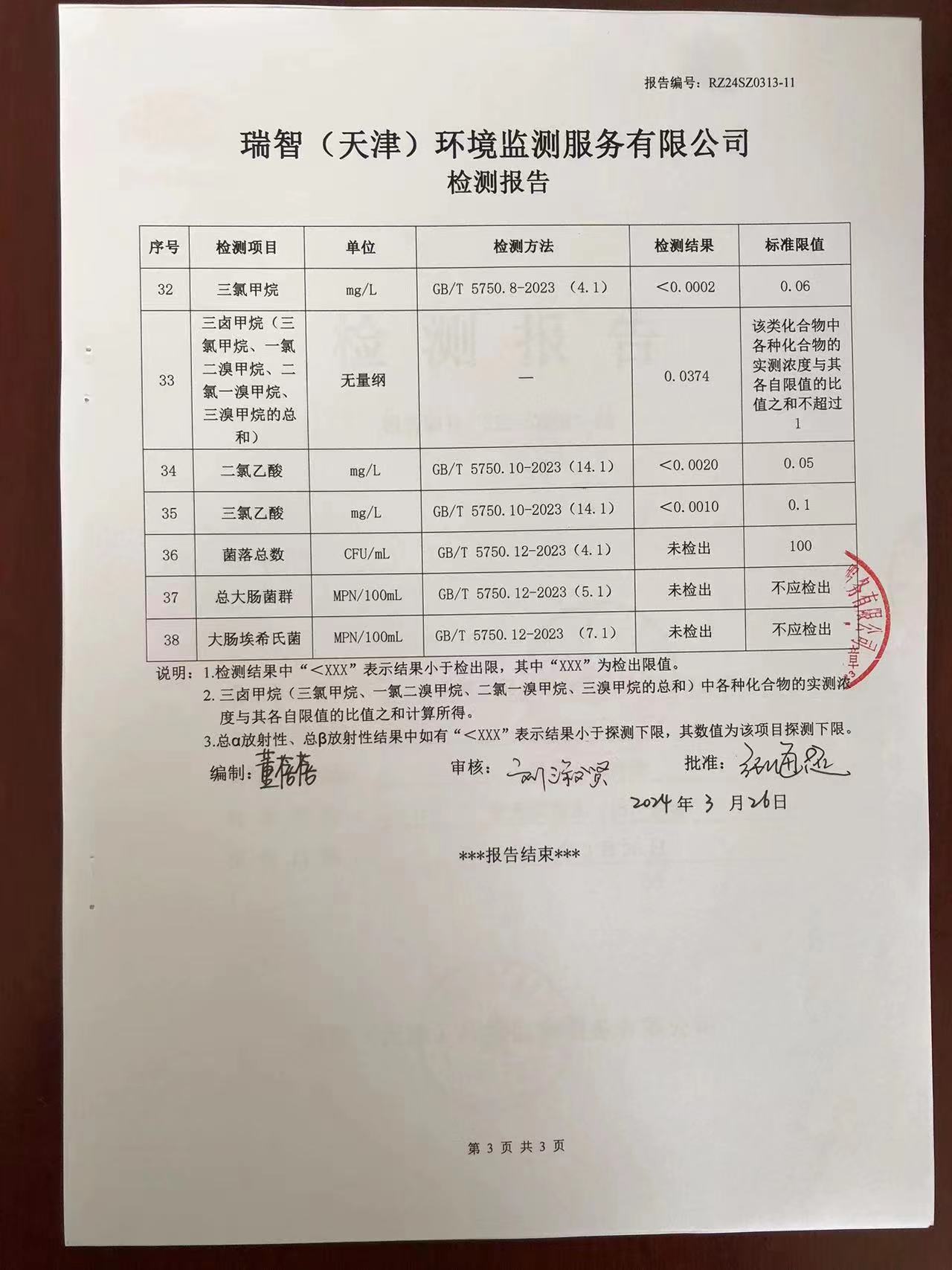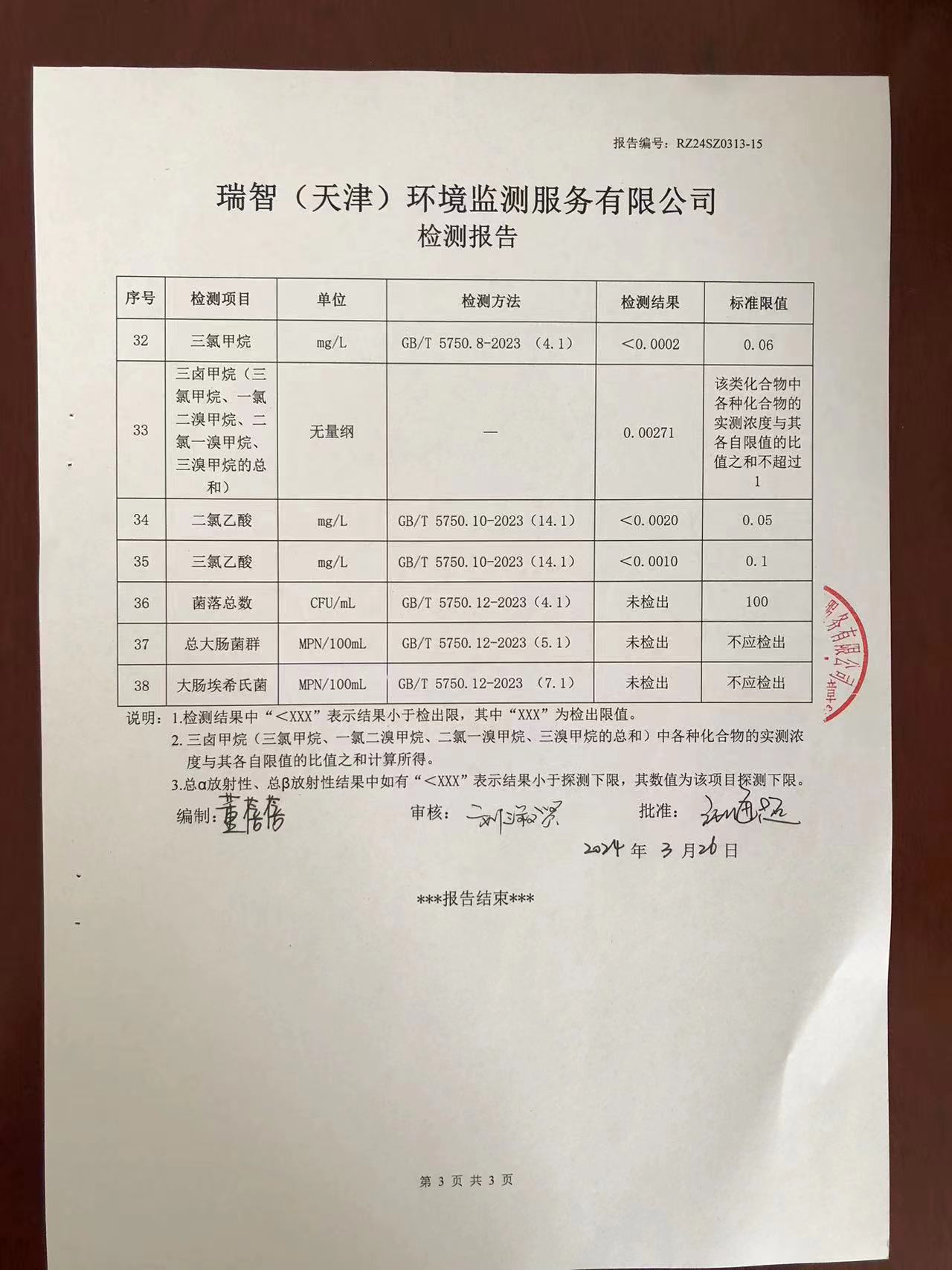 2024年3月份水質(zhì)檢測(cè)報(bào)告