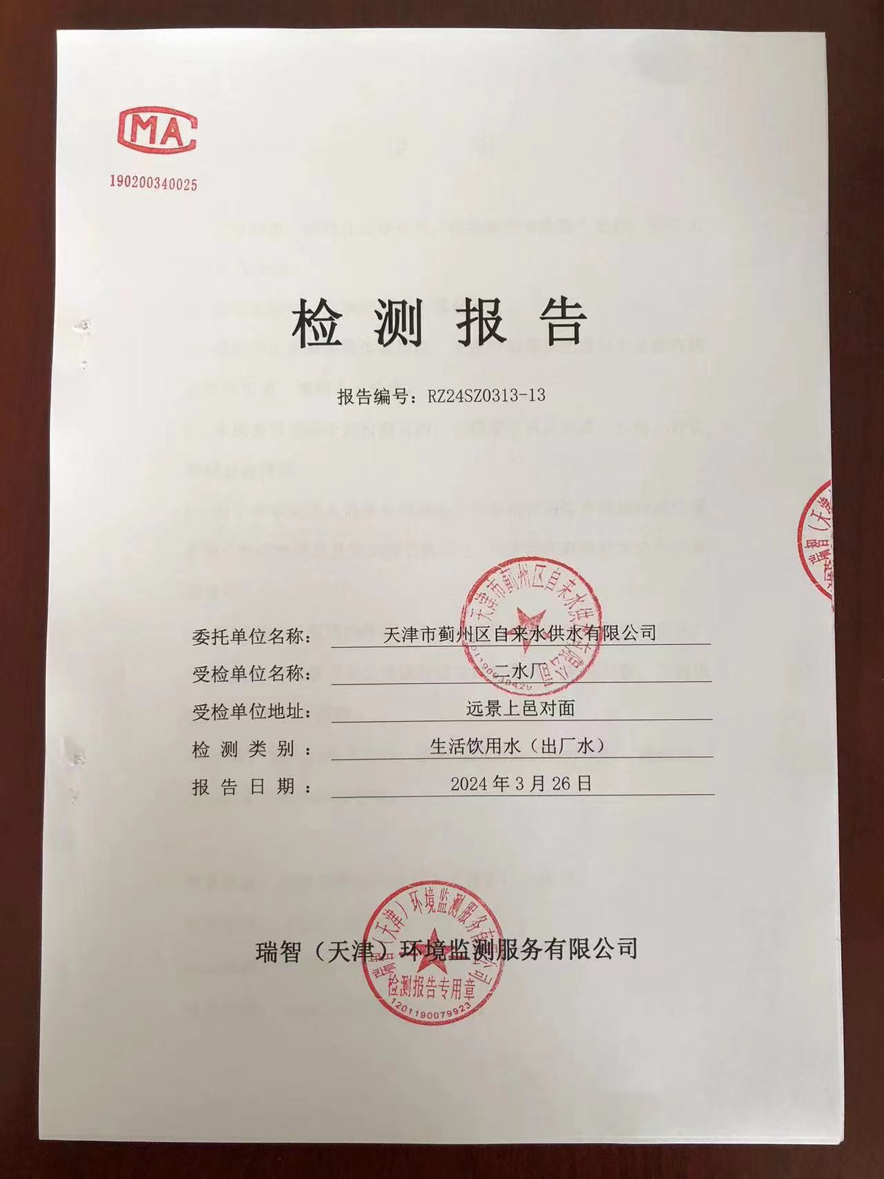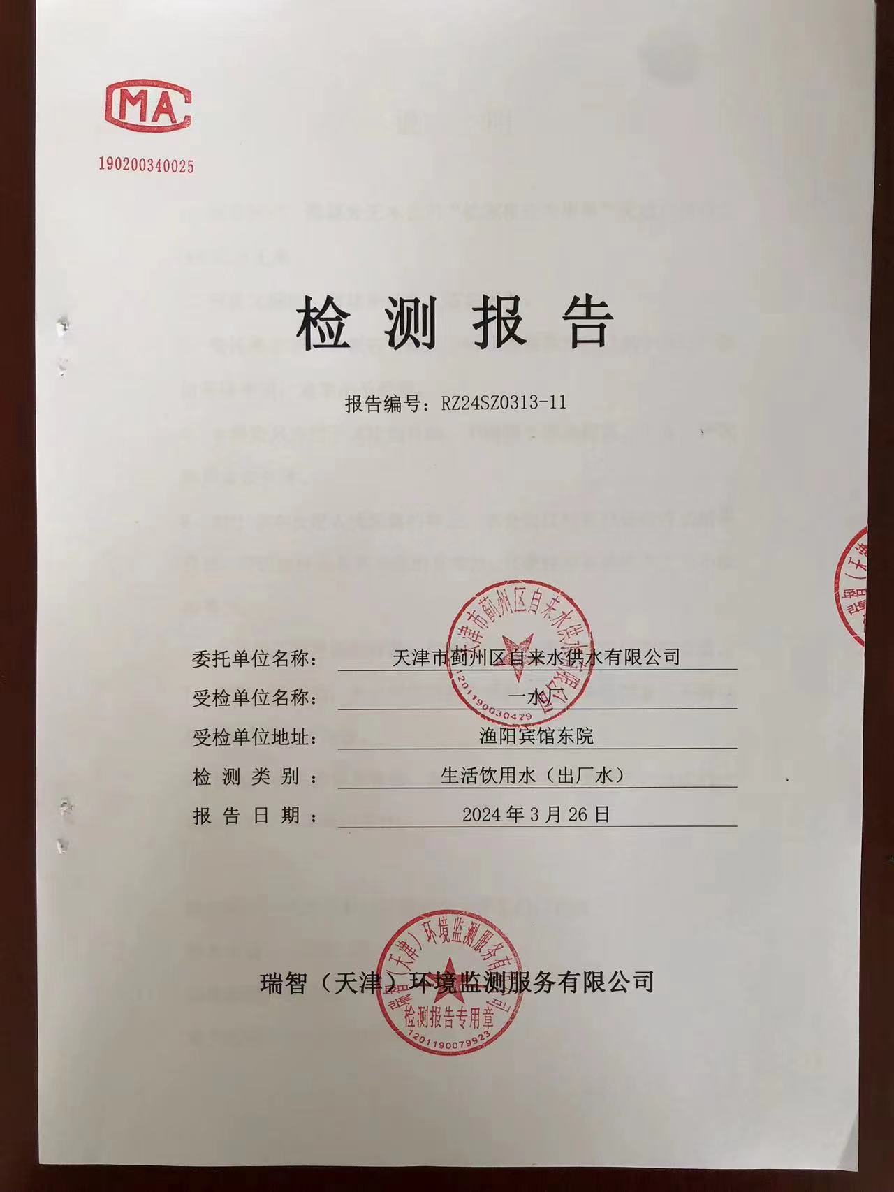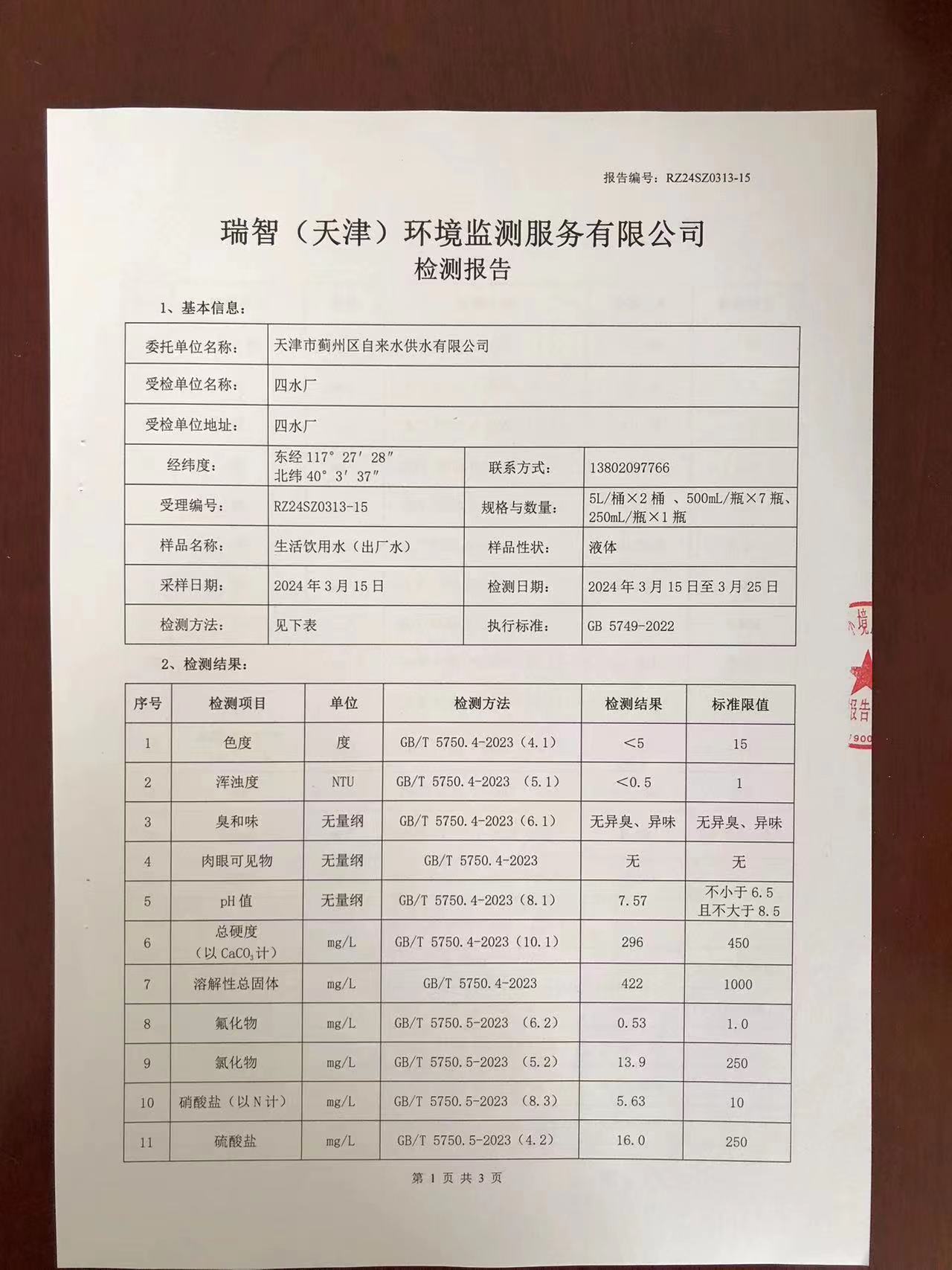 2024年3月份水質(zhì)檢測(cè)報(bào)告