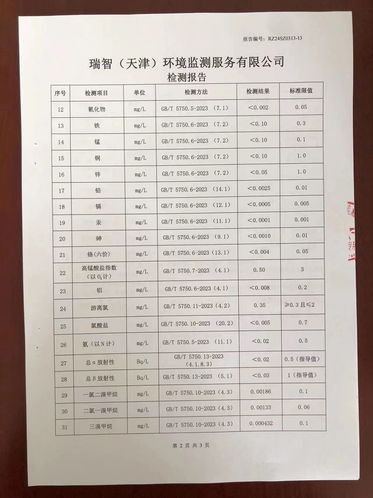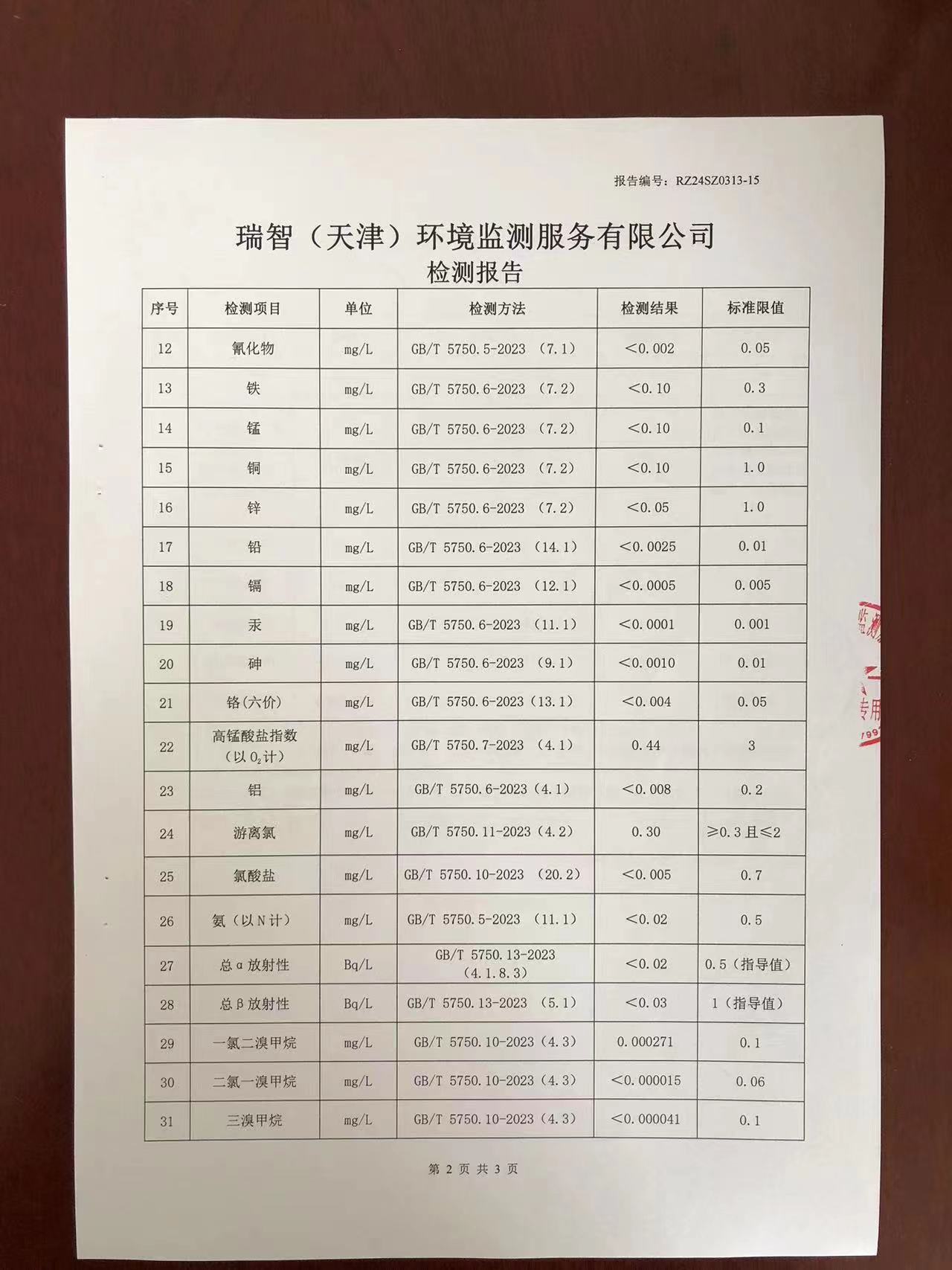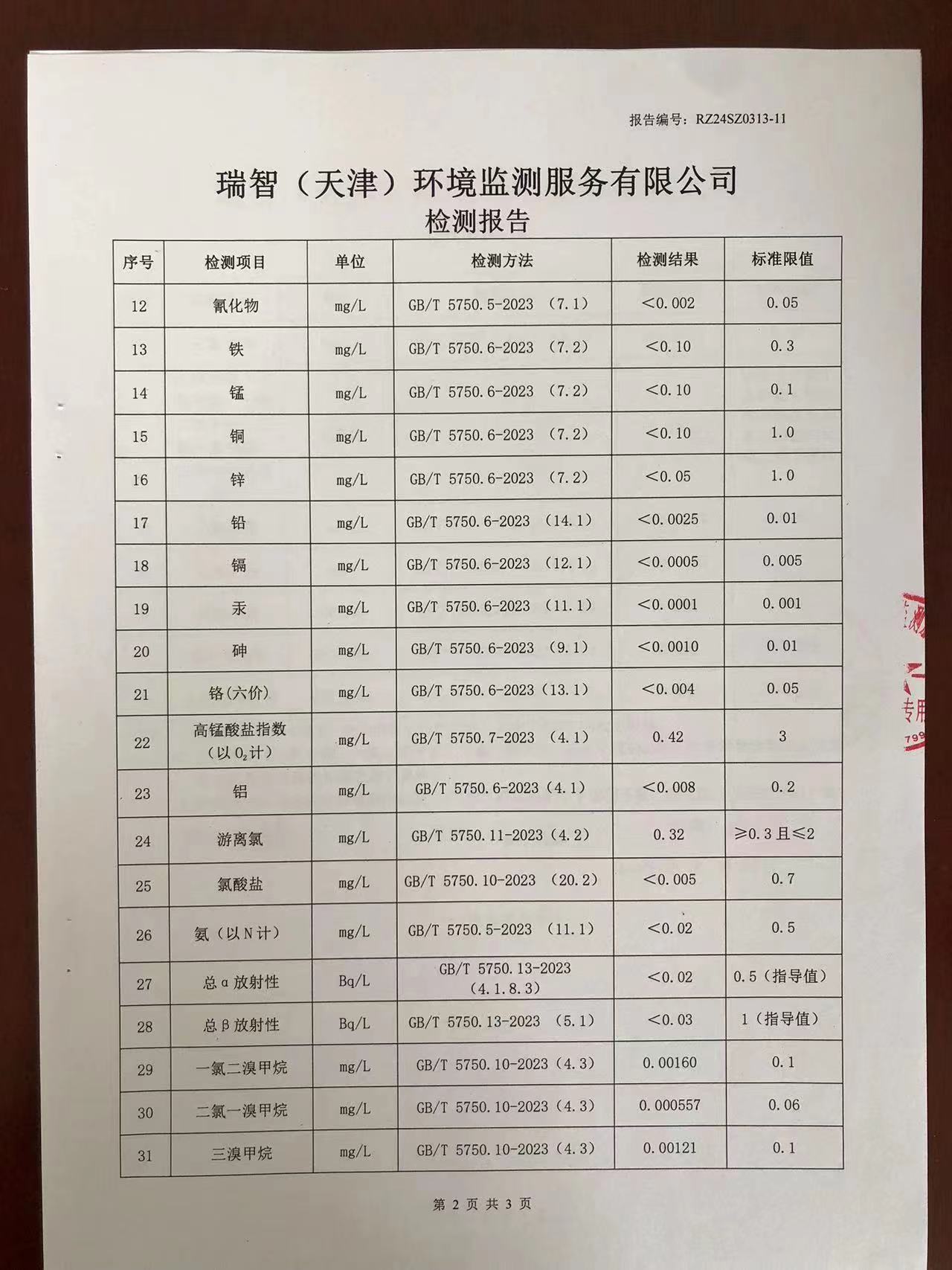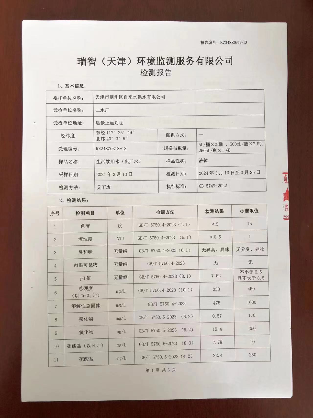 2024年3月份水質(zhì)檢測(cè)報(bào)告