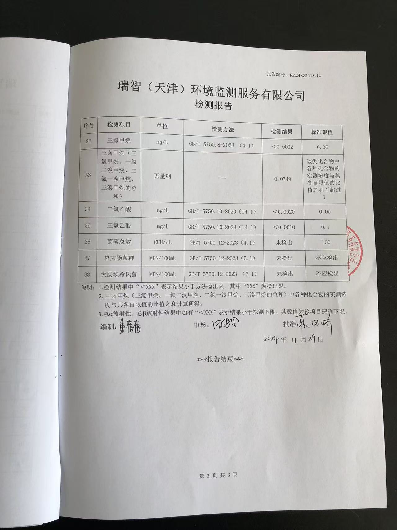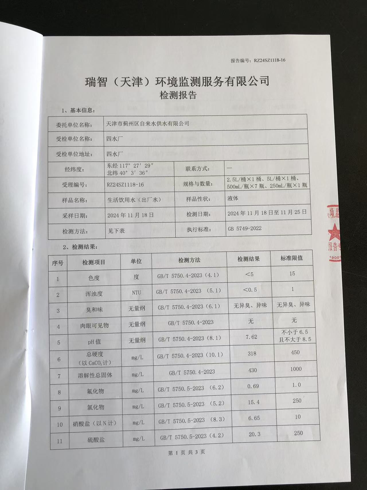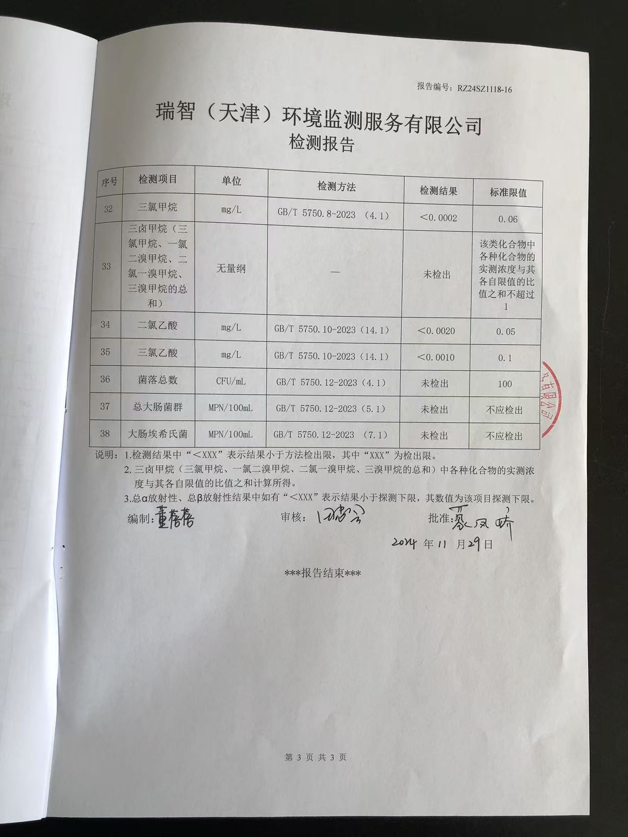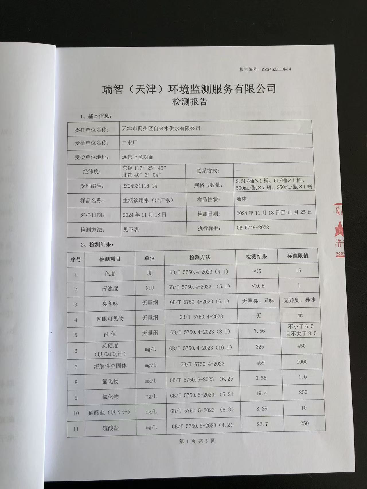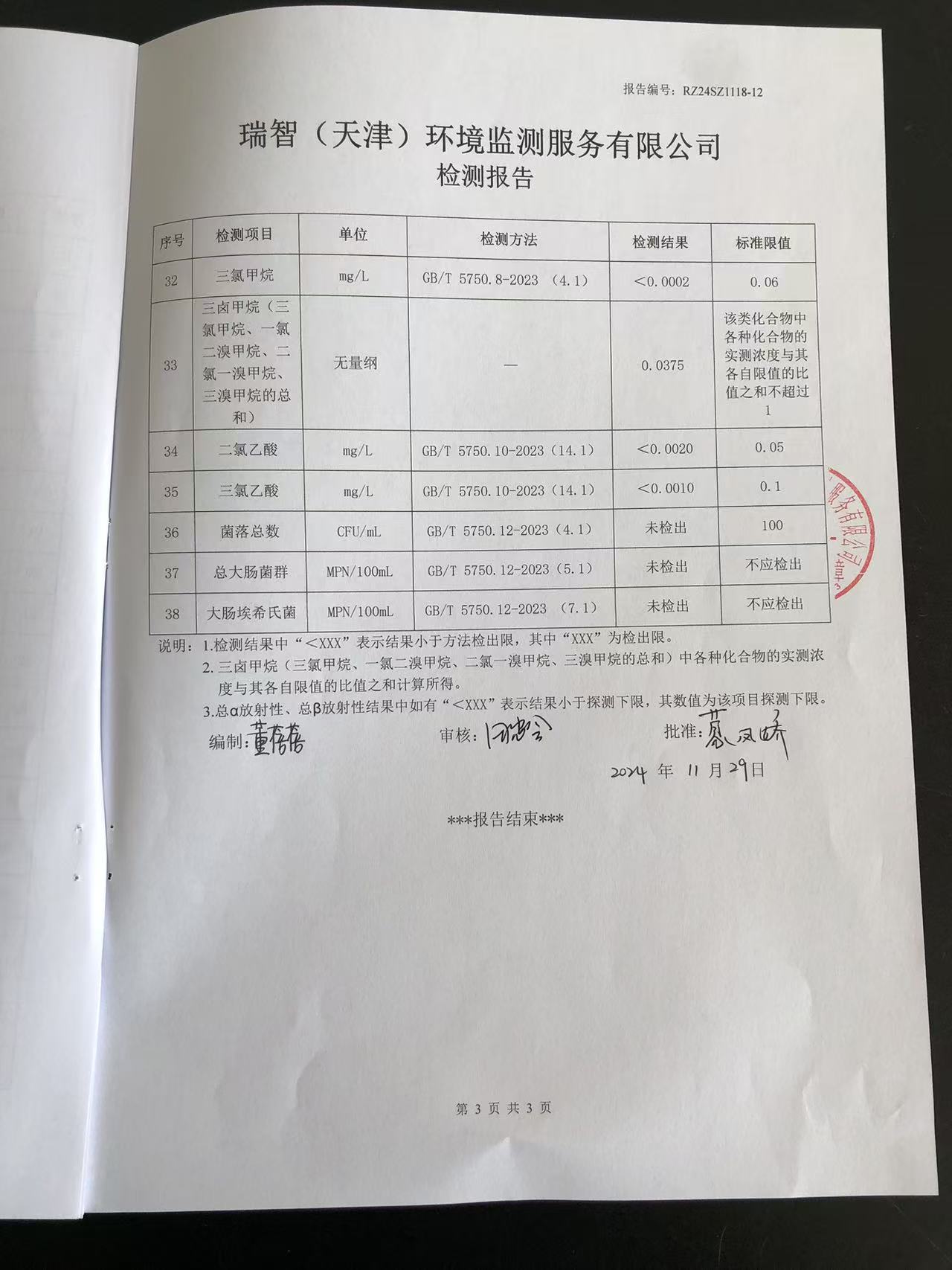 2024年11月份水質(zhì)檢測報(bào)告
