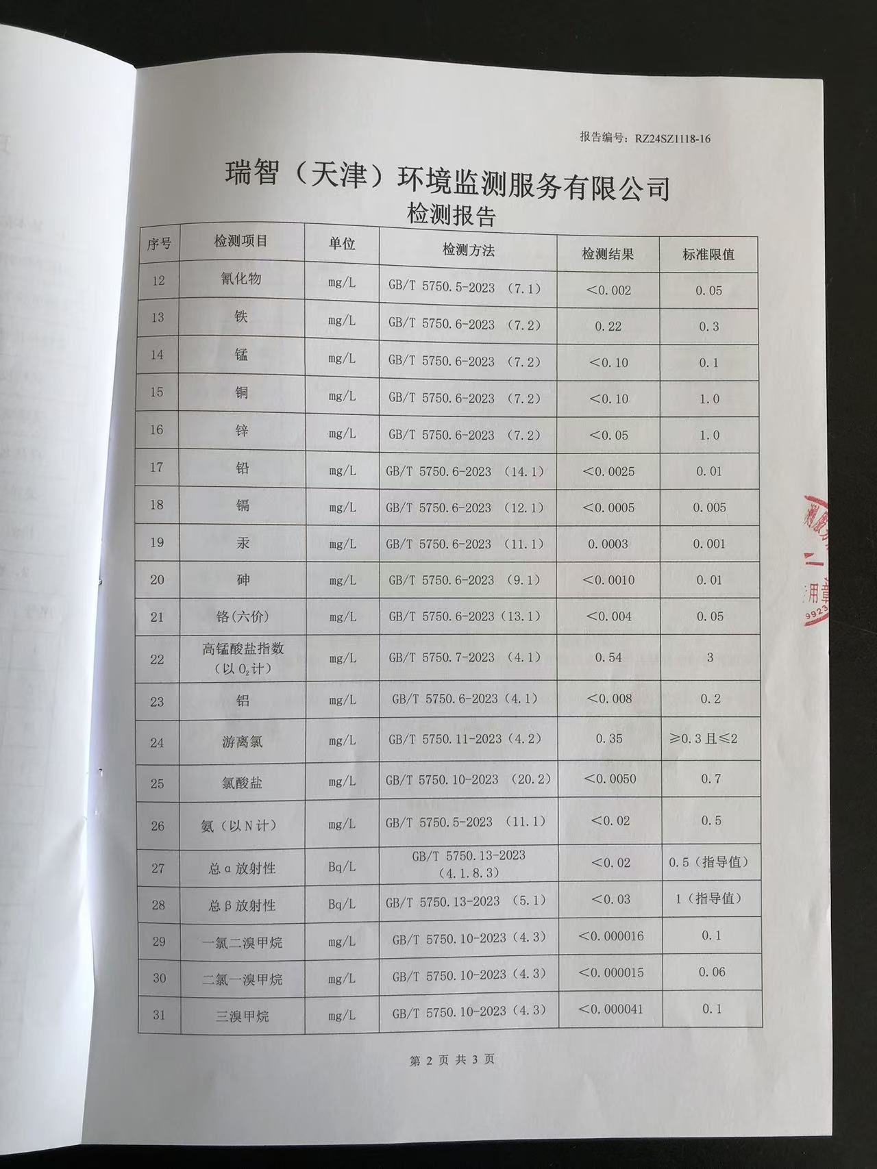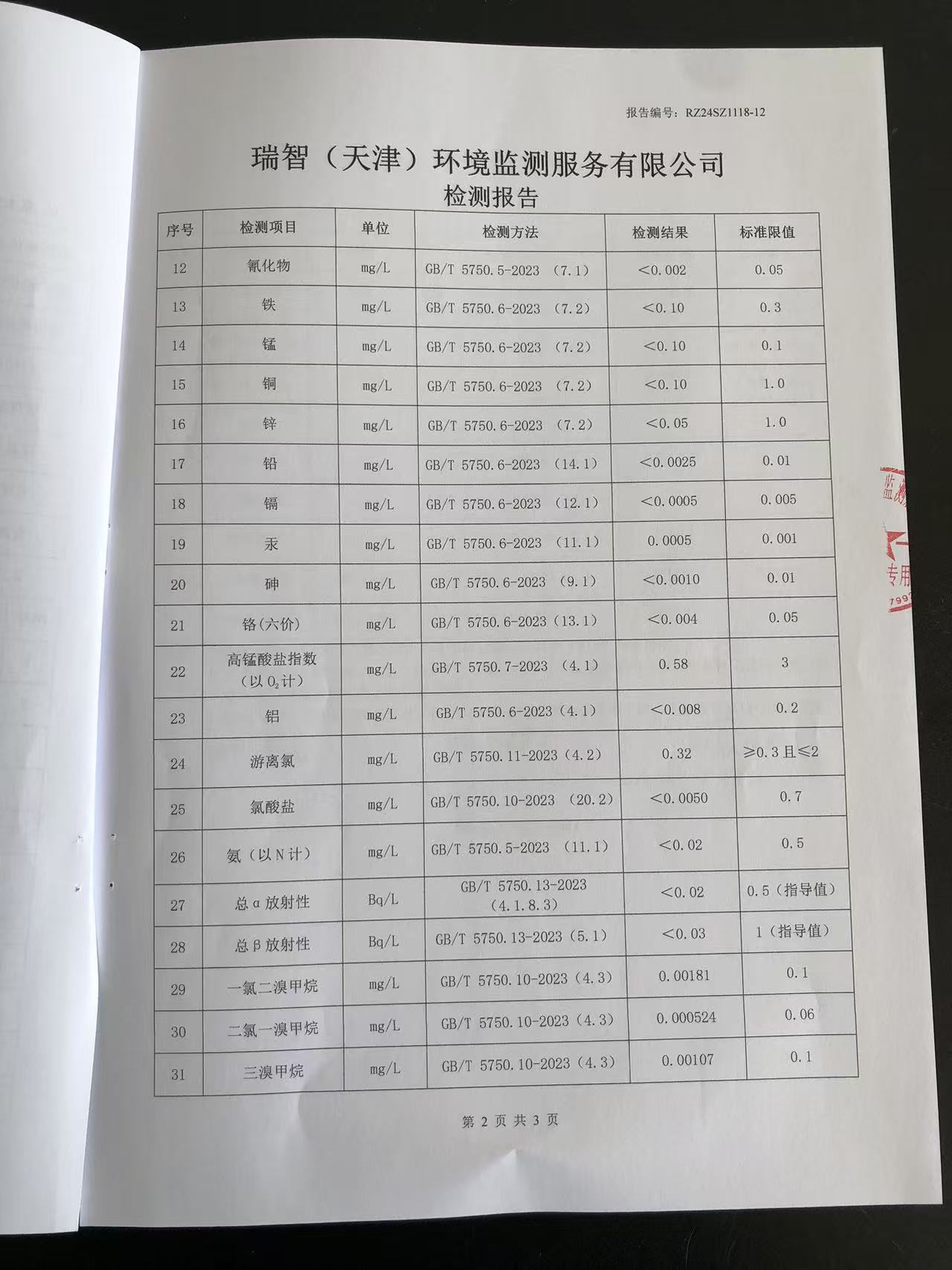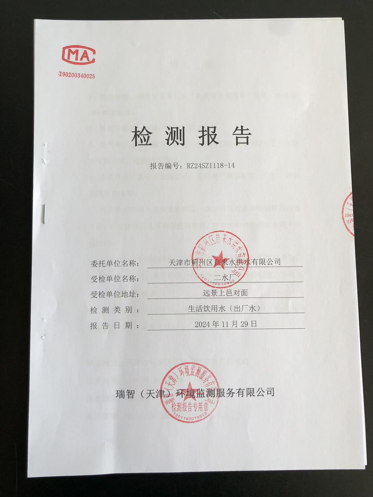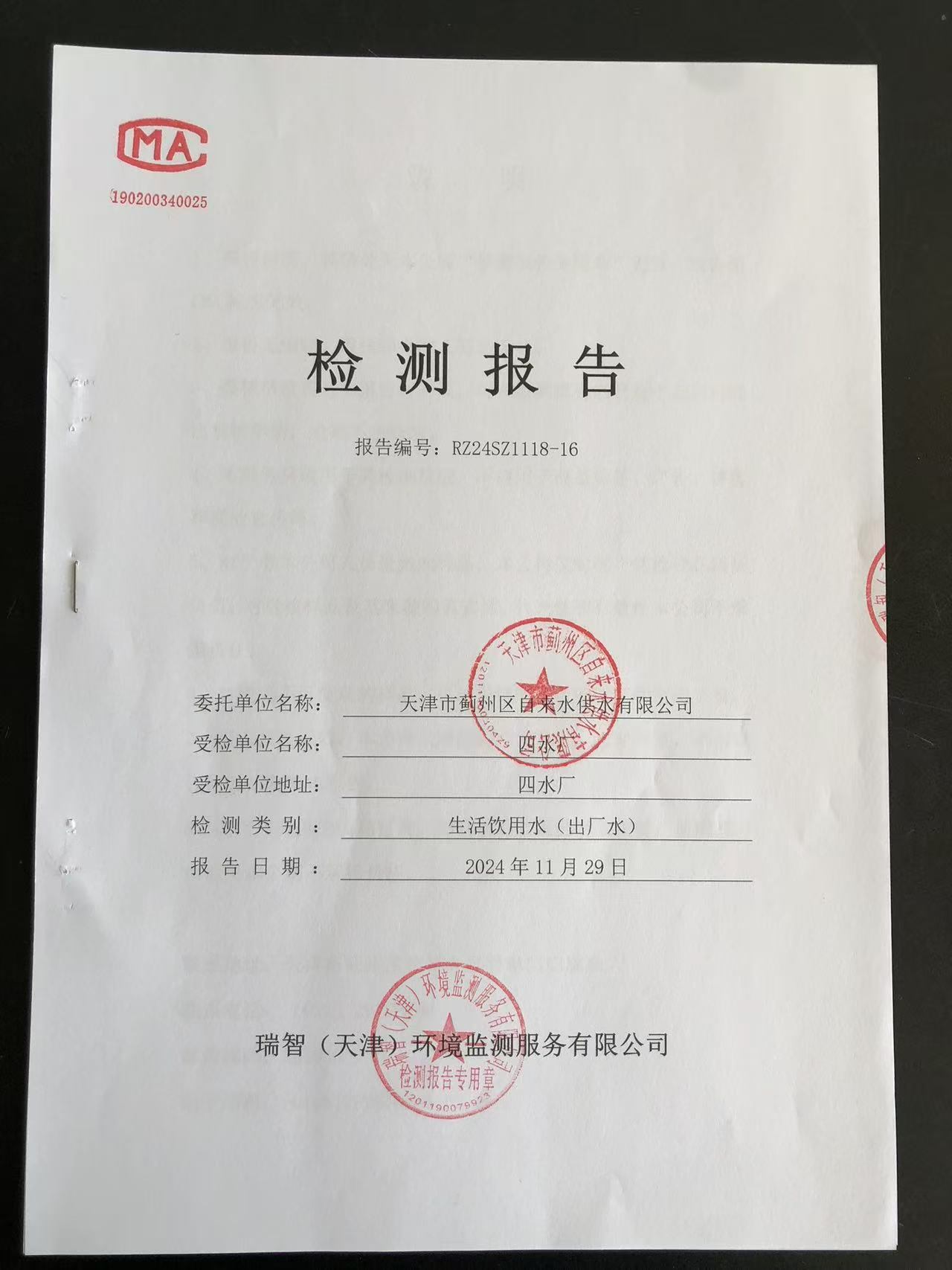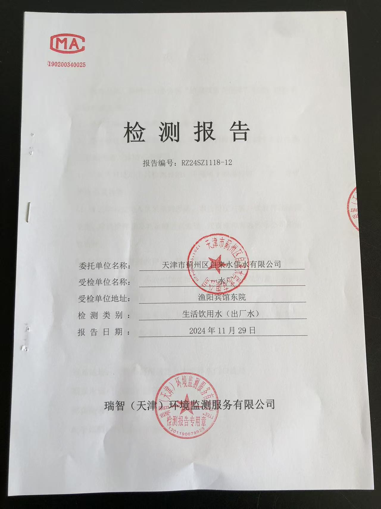 2024年11月份水質(zhì)檢測報(bào)告