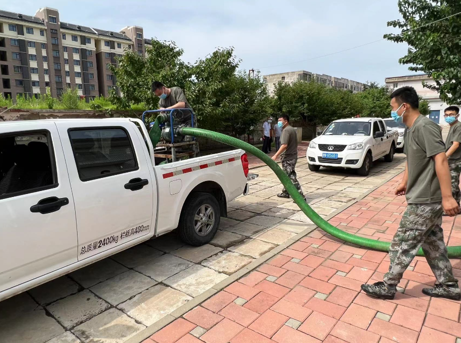 上圖為防汛搶險隊正在進行排水搶險作業(yè)