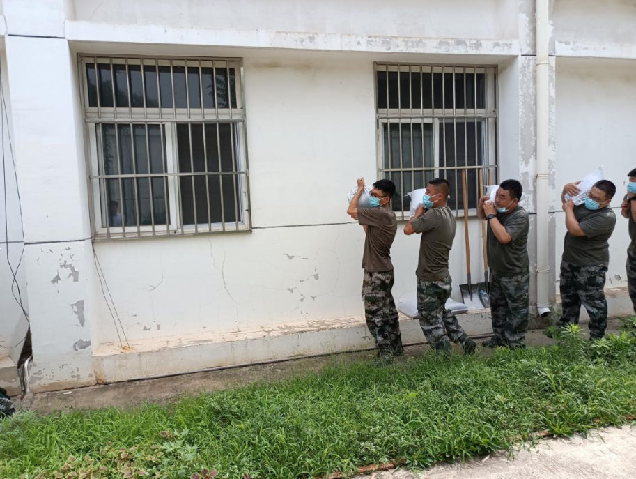 上圖為防汛搶險隊正在有序組織搬運沙袋