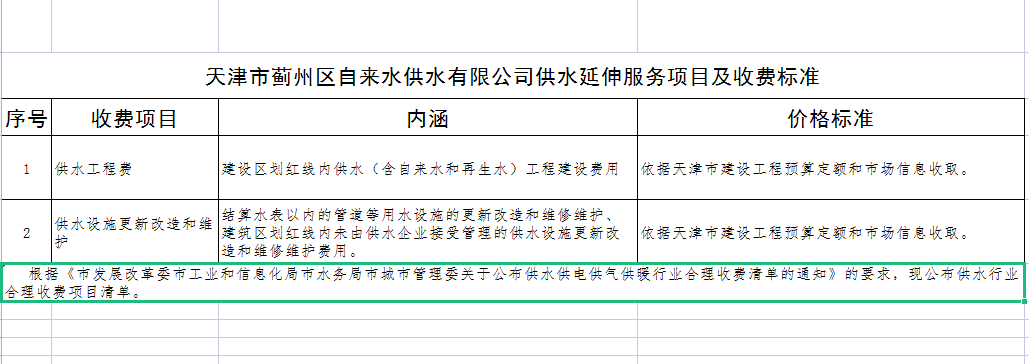 供水延伸服務項目及收費標準