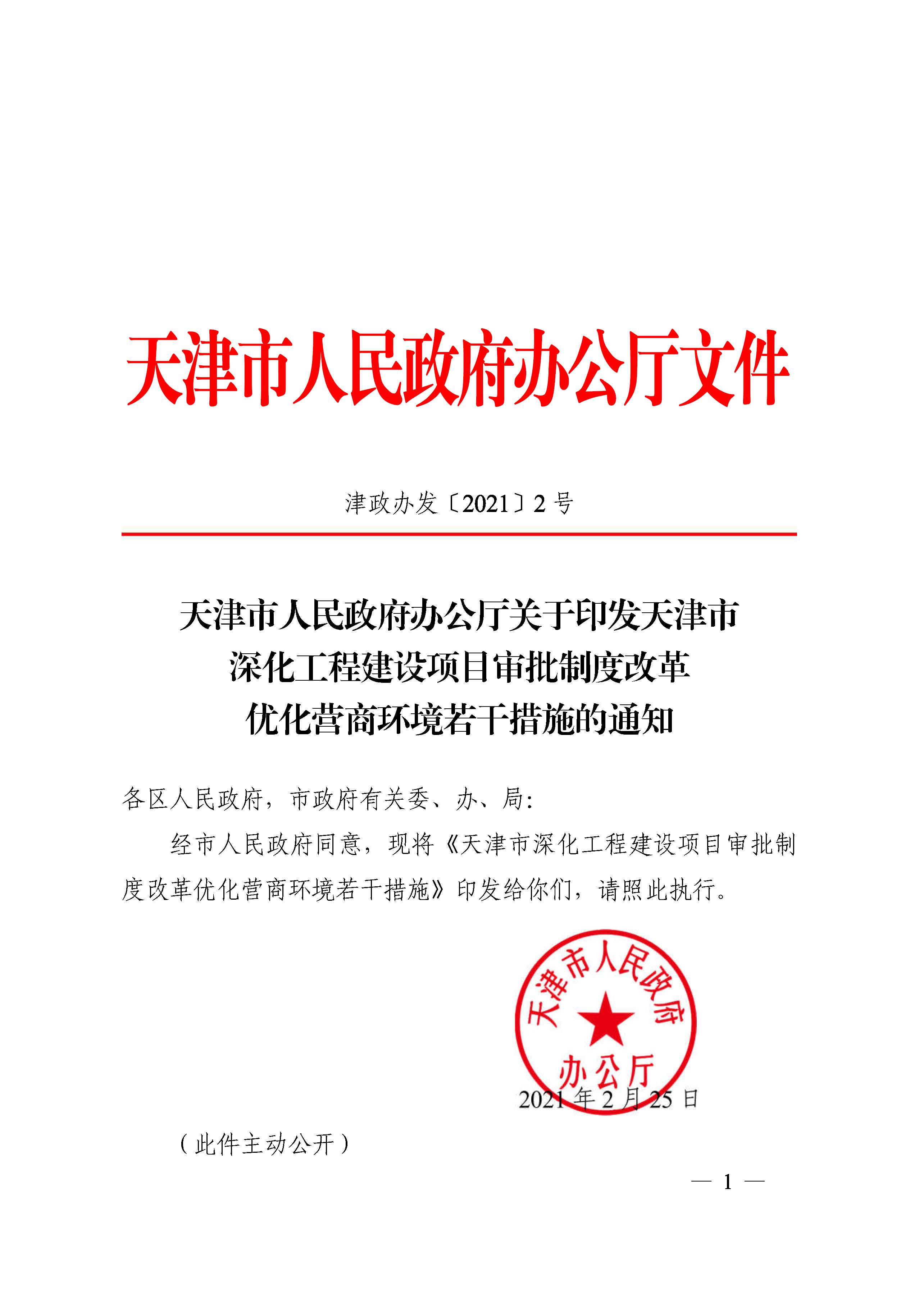 天津市優(yōu)化營(yíng)商環(huán)境若干措施的通知